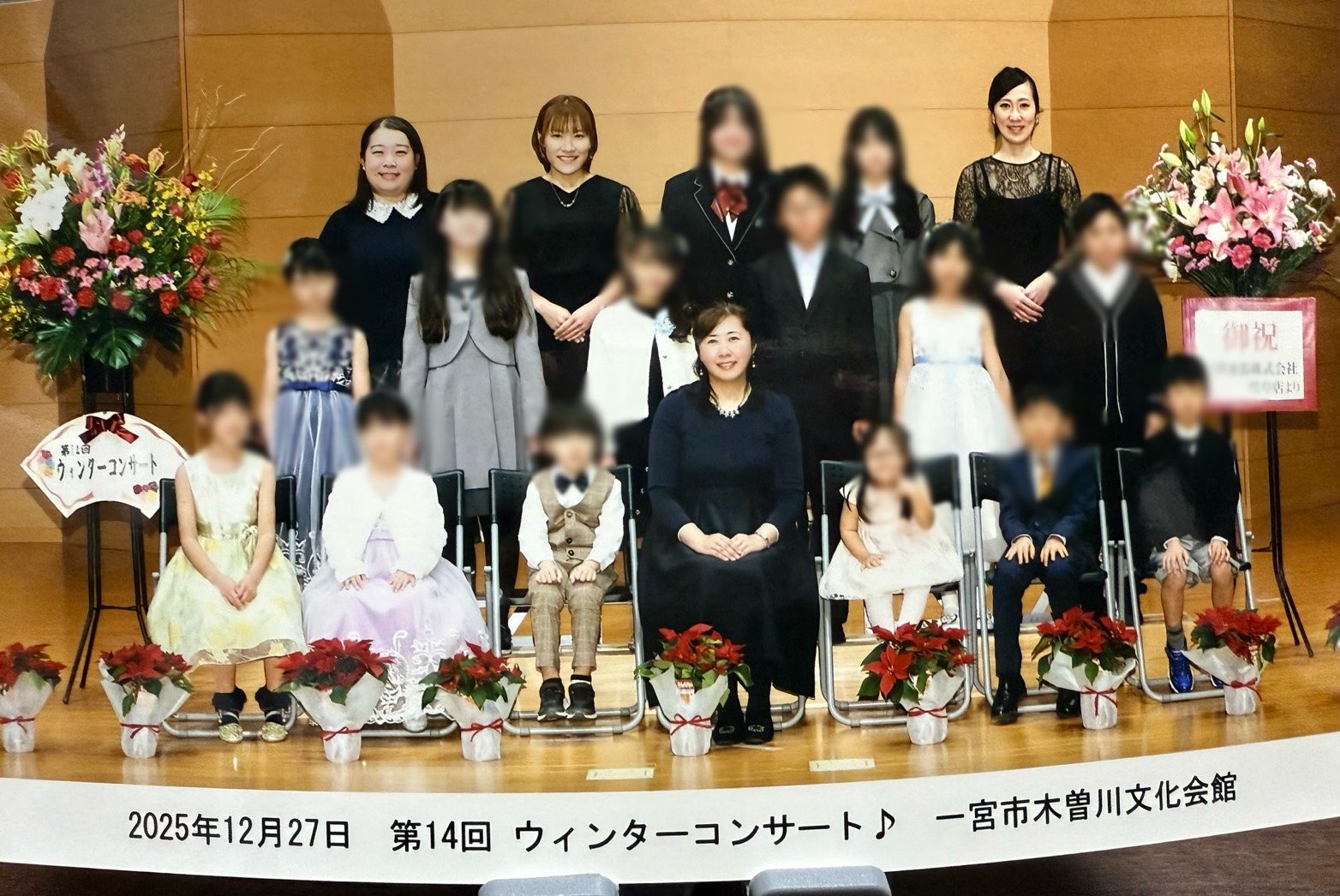 2025年12月27日に、スクール主催の発表会、第14回ウィンターコンサートが、一宮市木曽川文化会館で、開催されました。